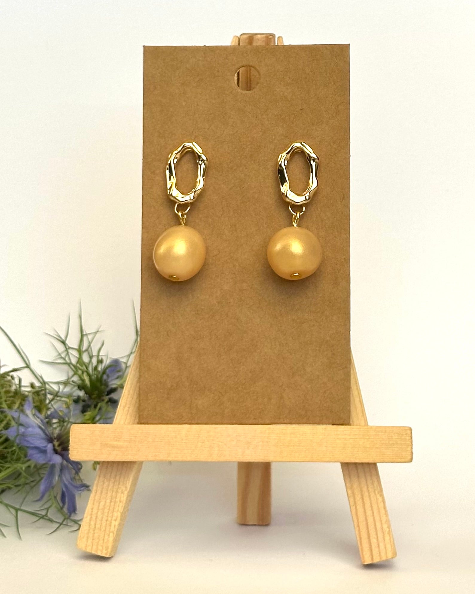 Diese eleganten Ohrhänger verzaubern dich durch ihre edle gold glitzernde Perlen aus Polymerton und den ovalen Stecker, der wie gehämmert aussieht - eine aussergewöhnlich schöne Kombination.