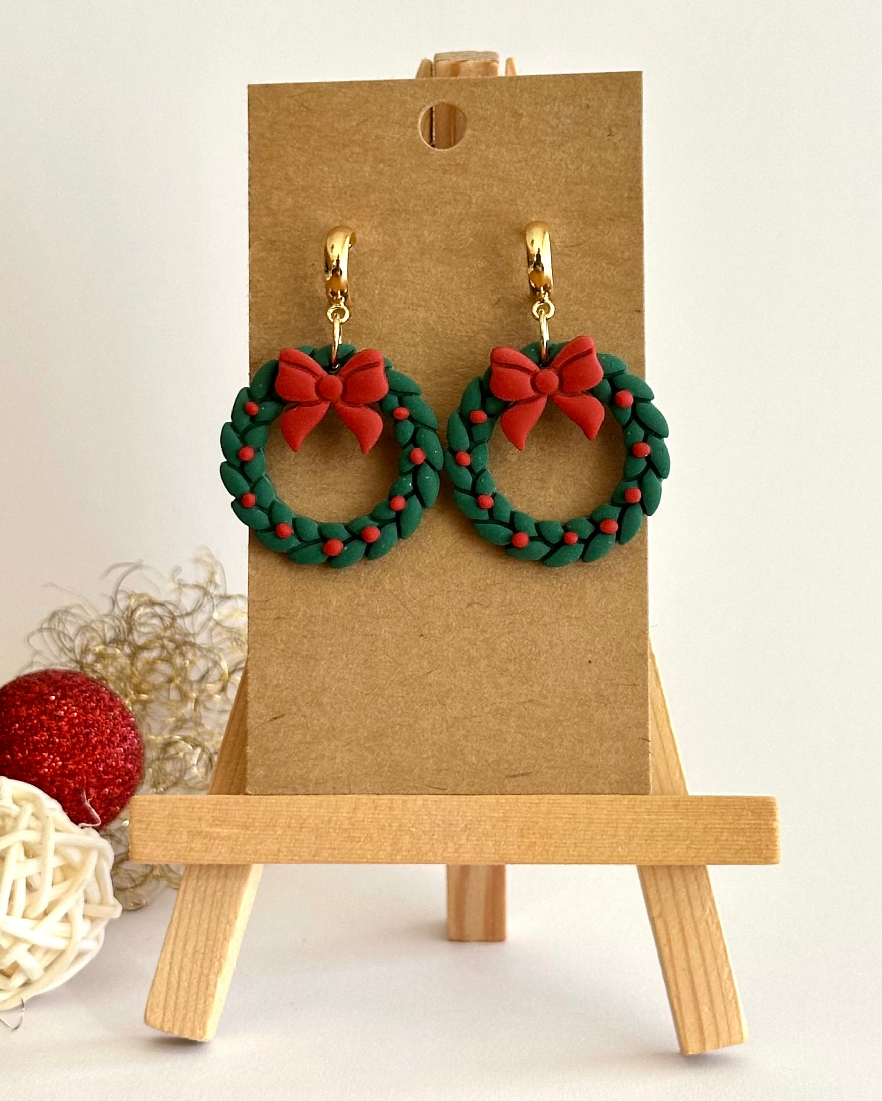 Dieser Weihnachtskranz zeichnet sich durch seine Detailverliebtheit aus. Es ist nicht einfach nur ein einfacher Weihnachtskranz, sondern er ist mit einer roten Schleife und vielen kleinen Kügelchen geschmückt. Genauso wie ein echter Weihnachtskranz eben aussieht.
