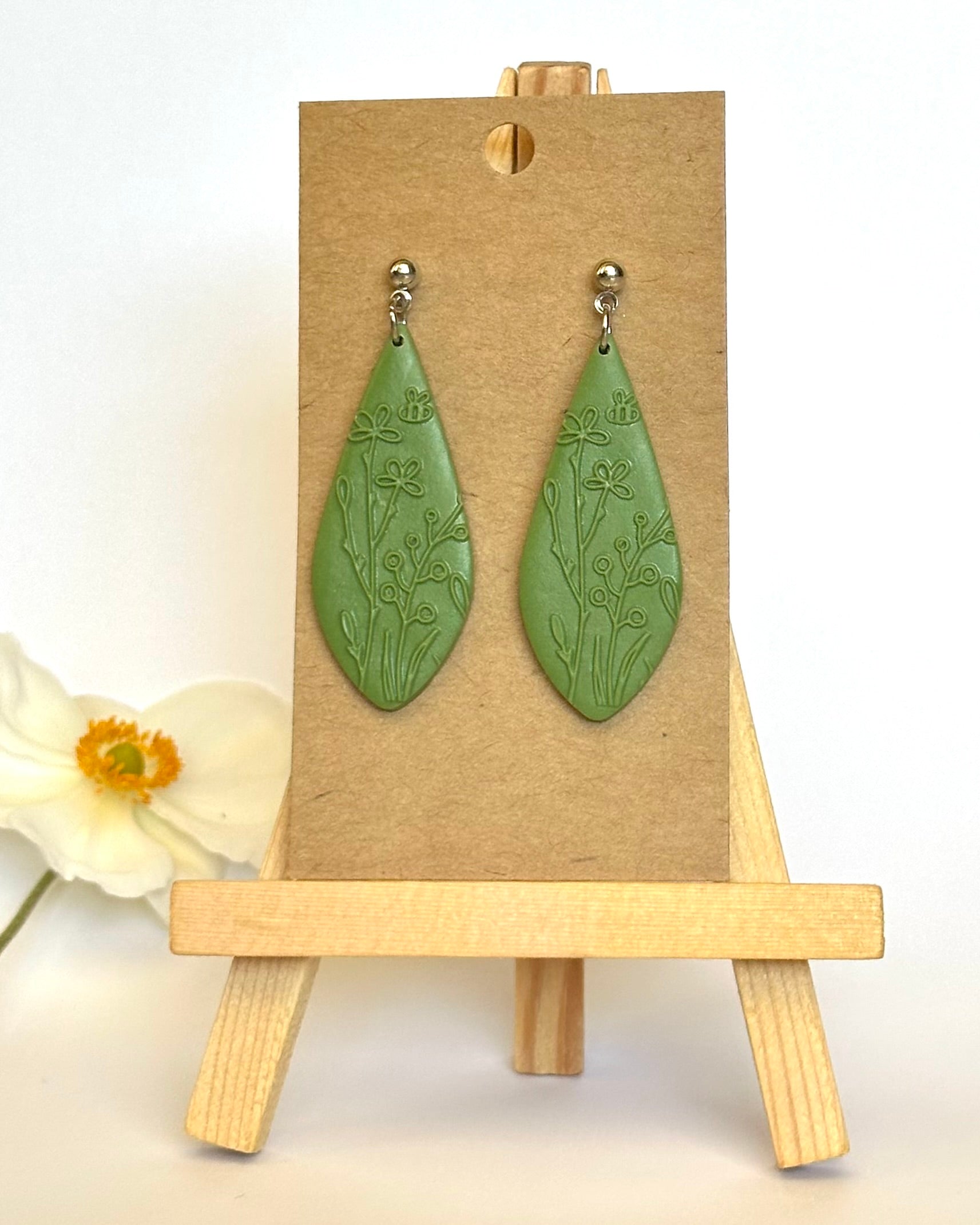 Natur pur! Diese simplen und doch stilvollen Ohrhänger sind mit einem grünen Anhänger gestaltet, der mit einem Blumenmusterrelief verziert ist.
