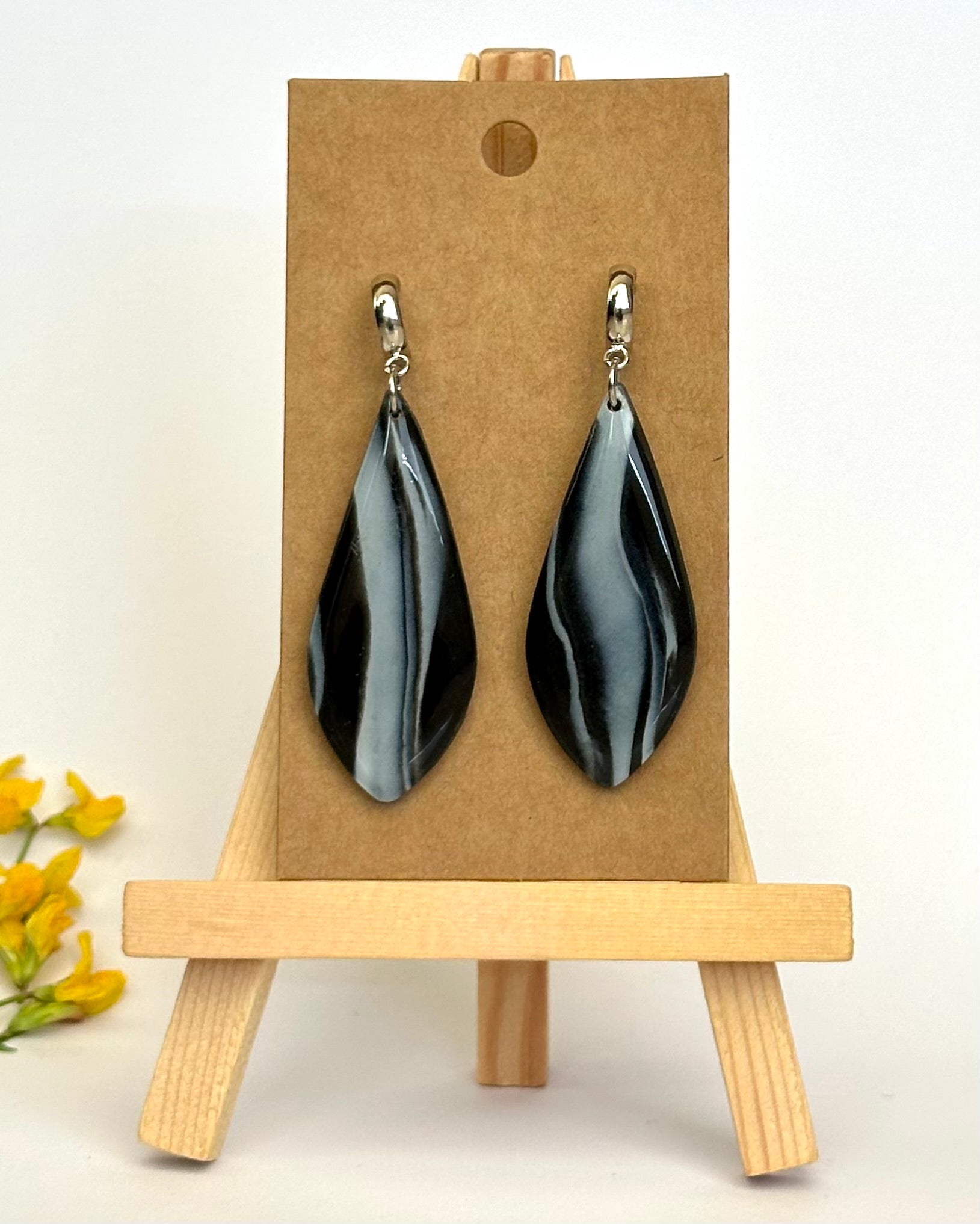 Diese Ohrhänger in sind ein Blickfang in deinem Alltag oder auf der nächsten Party. Durch ihren schwarz-weissen Marmoreffekt gleichen sie weissen Polarlichtern. Besonders edel wirken sie durch die glänzende Schicht aus UV-Harz.