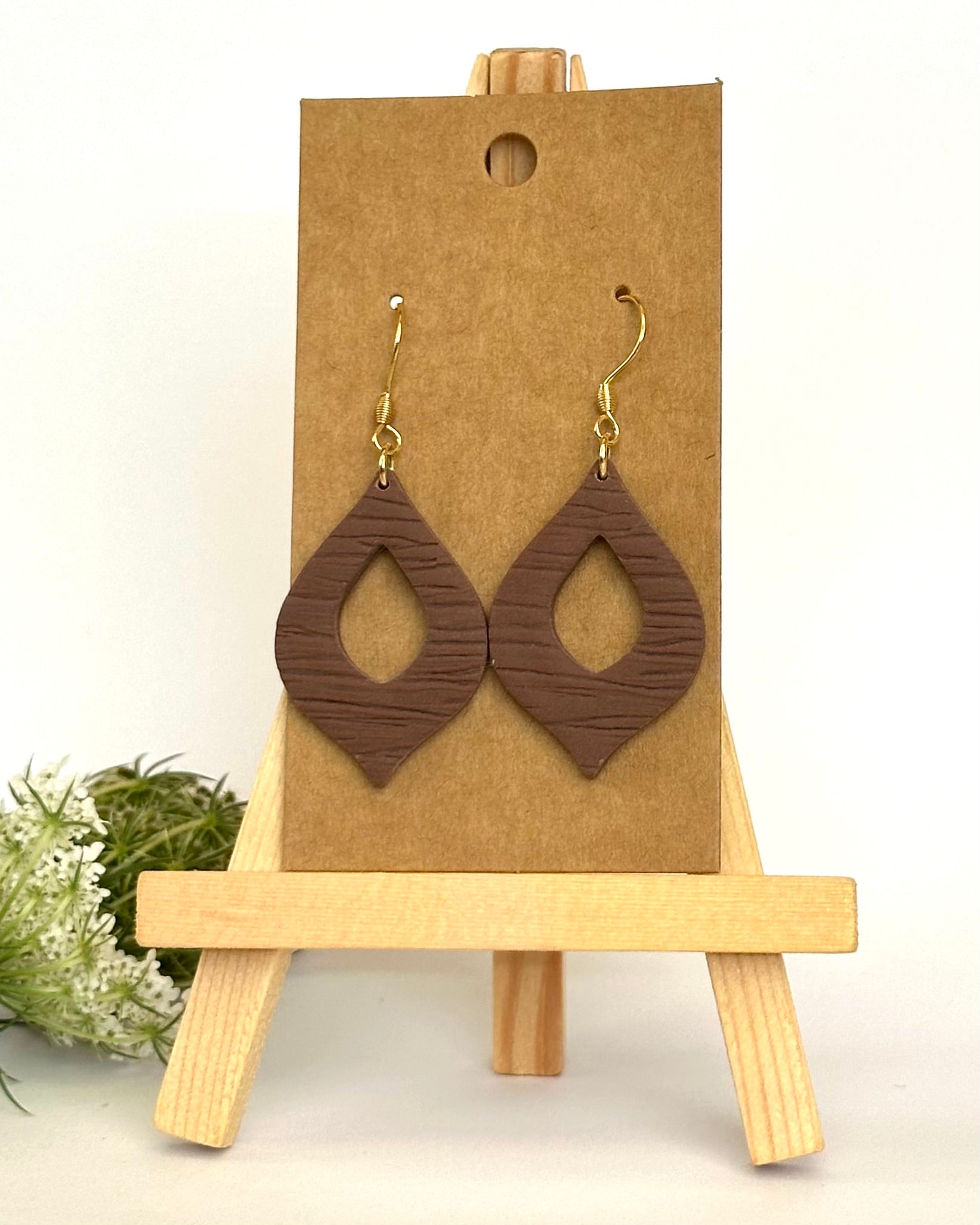 Diese schlichten Ohrhänger bestechen durch ihre aussergewöhnliche Form und die Holzmaserung. Sie sind der perfekte Begleiter für jedes Outfit.