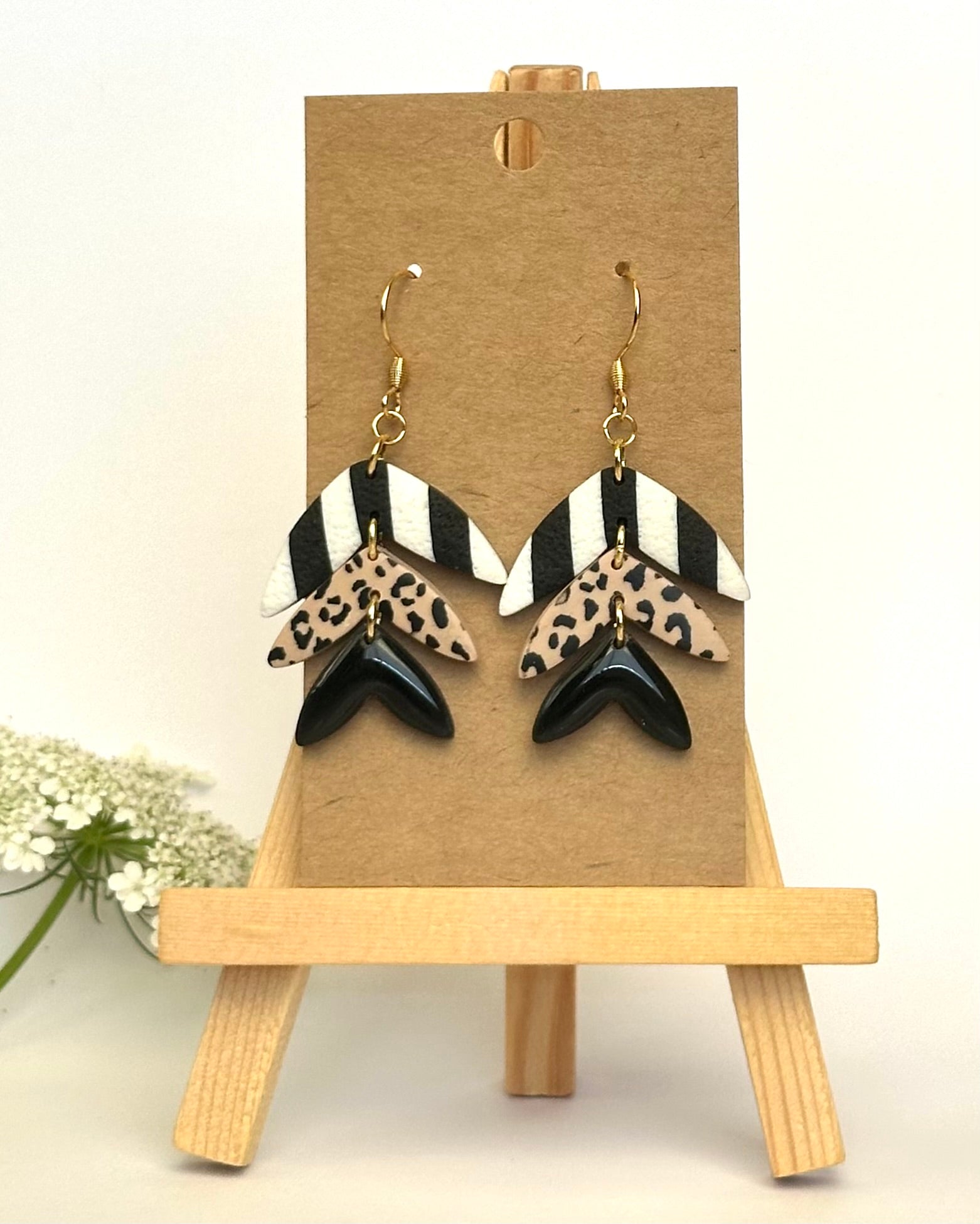 Schwarz-weiss meets Leo meets Schwarz. Diese wunderschönen Ohrhänger kombinieren verschiedene Farben und Texturen. Ein absolutes Highlight für jede, die auf Leo steht.