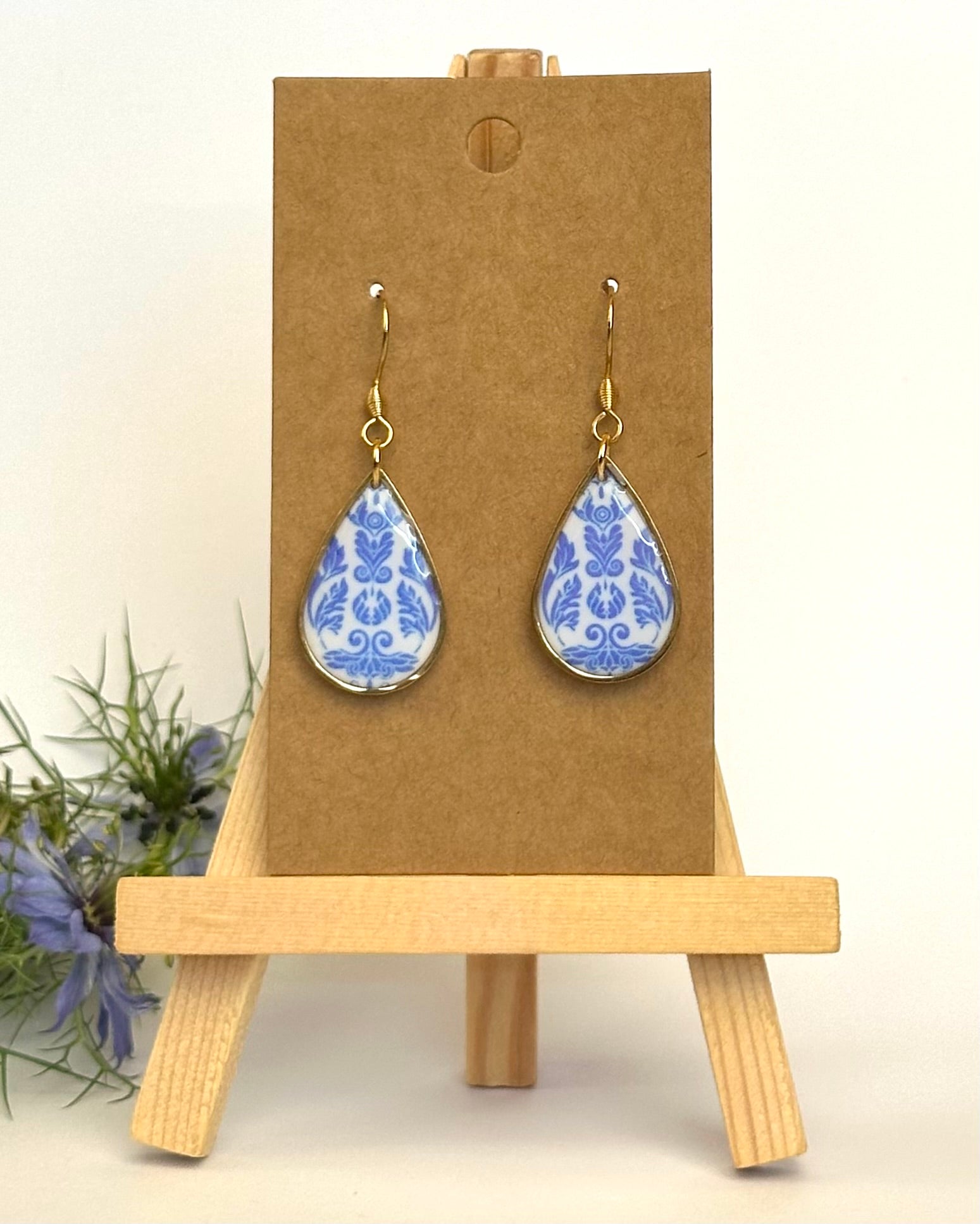 Warst du schon einmal in Portugal? Dann erkennst du bestimmt dieses Motiv, das den portugiesischen Azulejos nachempfunden ist. Perfekte Ohrringe, um ins Urlaubsfeeling zu kommen.