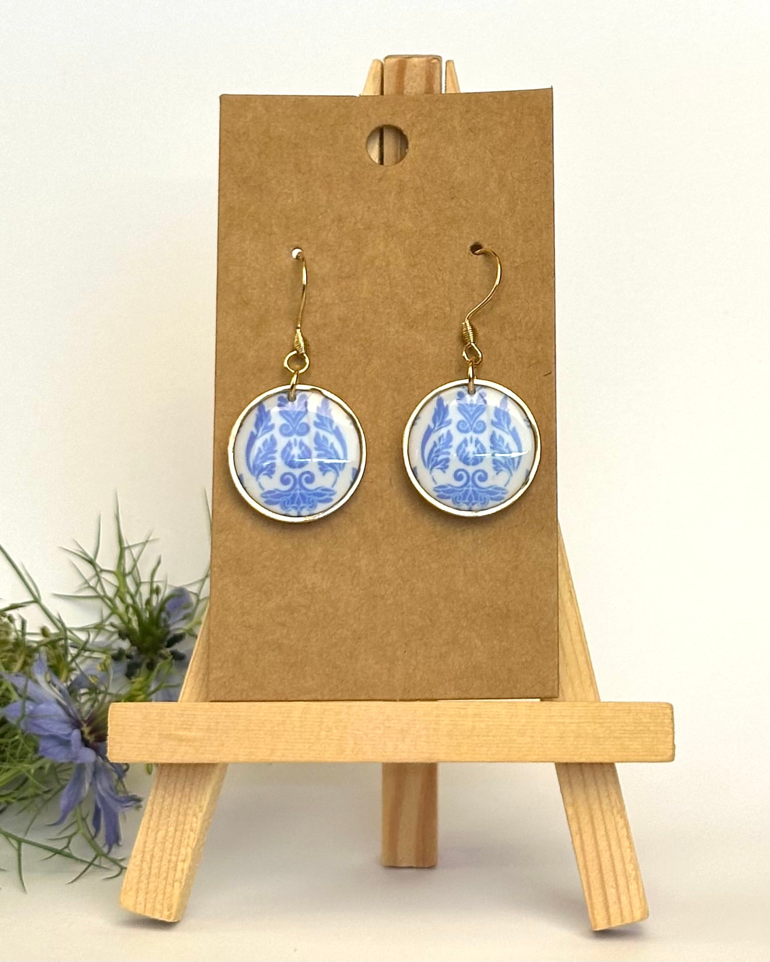 Warst du schon einmal in Portugal? Dann erkennst du bestimmt dieses Motiv, das den portugiesischen Azulejos nachempfunden ist. Perfekte Ohrringe, um ins Urlaubsfeeling zu kommen.