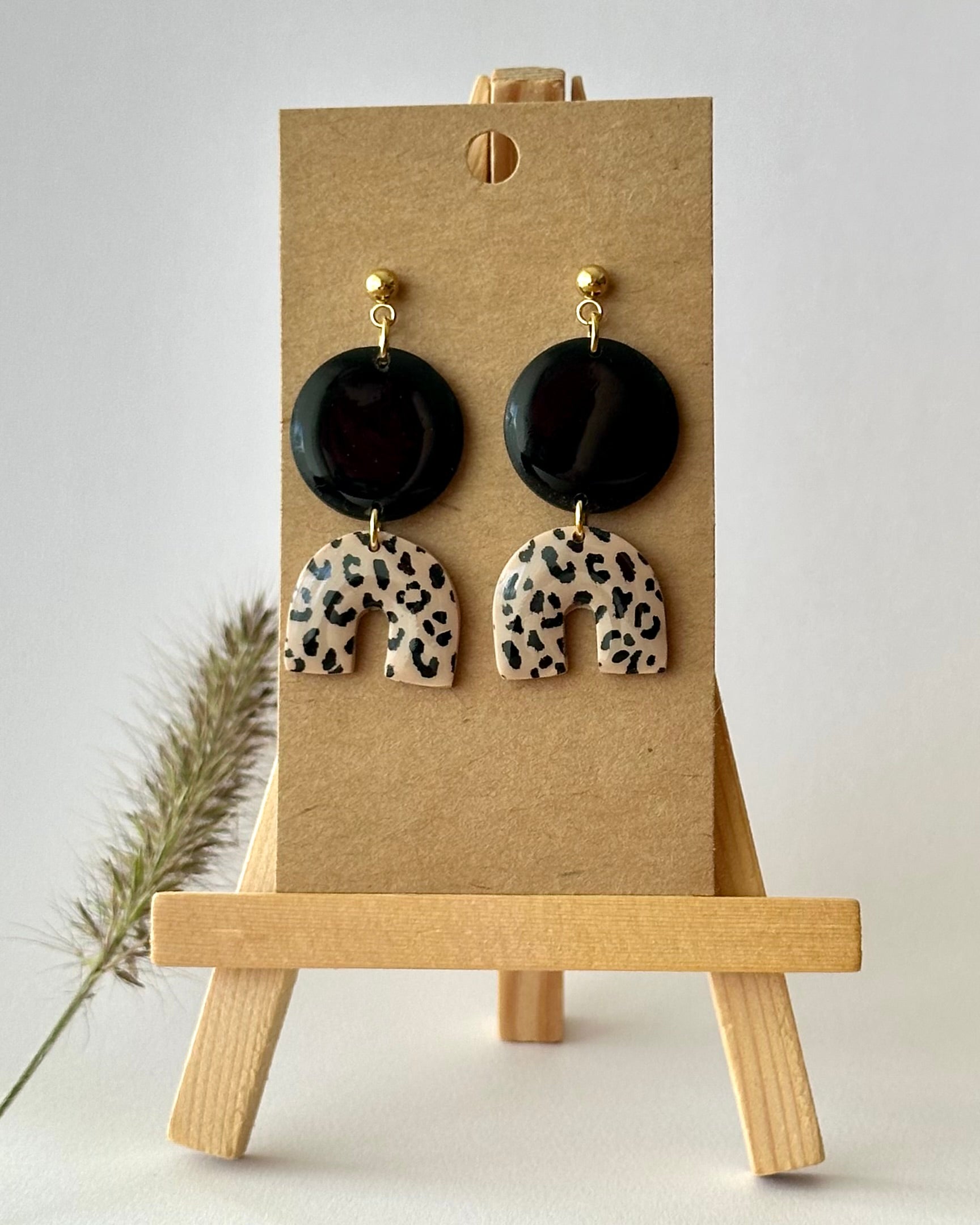 Leo meets Gold. Diese wunderschönen Ohrhänger kombinieren einen runden schwarzen Anhänger und einen bogenförmigen im Leo-Look. Ein absolutes Highlight für jede, die auf Leo steht.