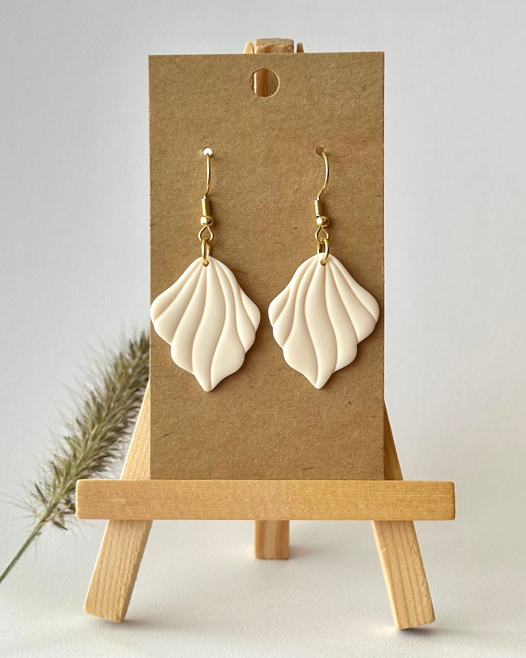 Diese ivoryfarbenen Ohrhänger sind simpel gehalten und doch bestechen sie durch ihr einzigartiges Muster.