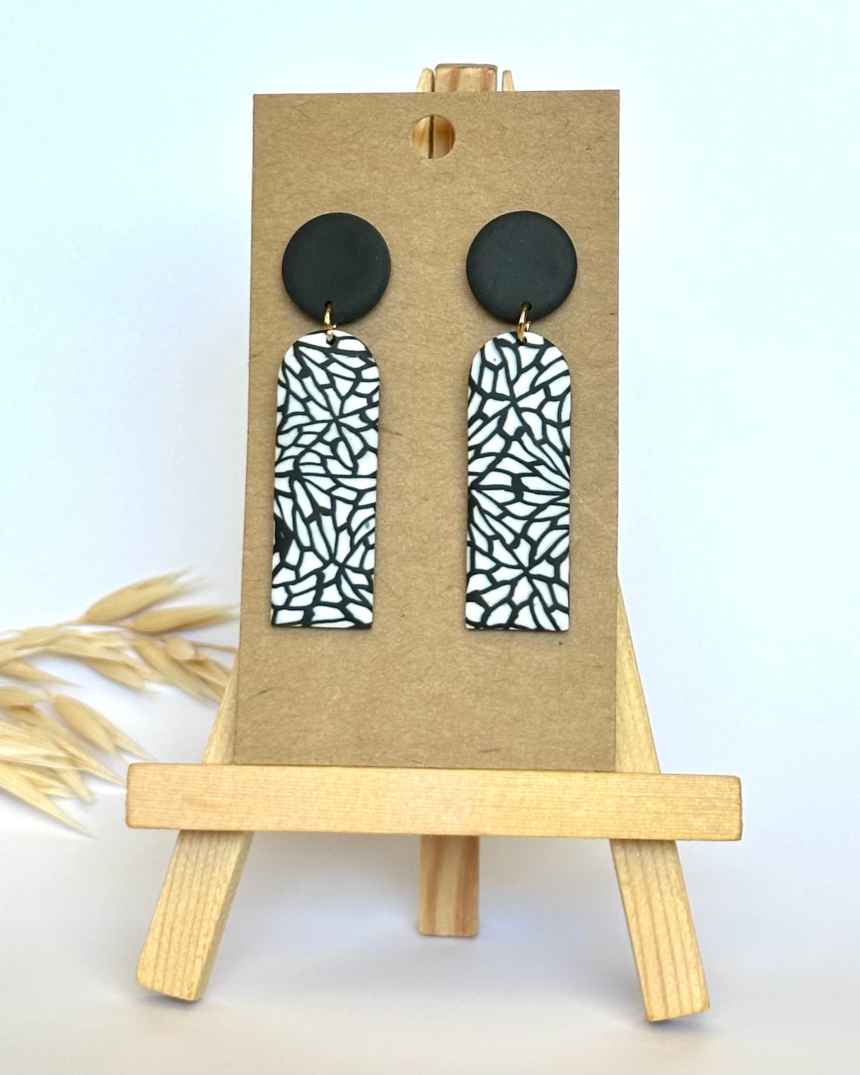 Diese süssen Ohrhänger bestechen durch ihre Kombination aus schwarz und weiss, mit einem besonders filigranen Muster.