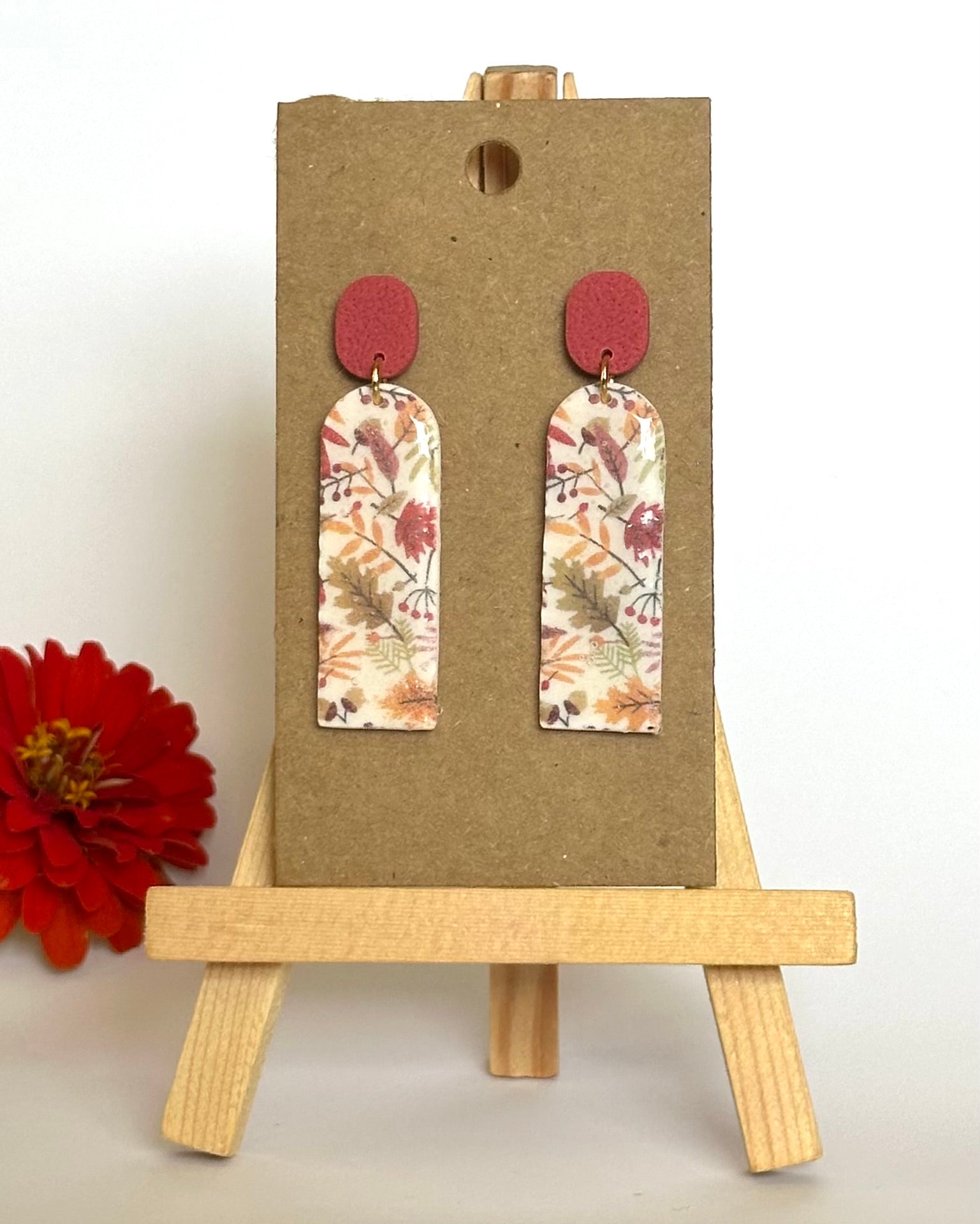 Der Herbst, der Herbst, der Herbst ist da! Diese Ohrhänger mit einem Herbstblättermotiv sind ein absoluter Hingucker. Das Motiv wurde mithilfe von Transferpapier aufgetragen und mit einer glänzenden UV-Harz-Schicht versiegelt.