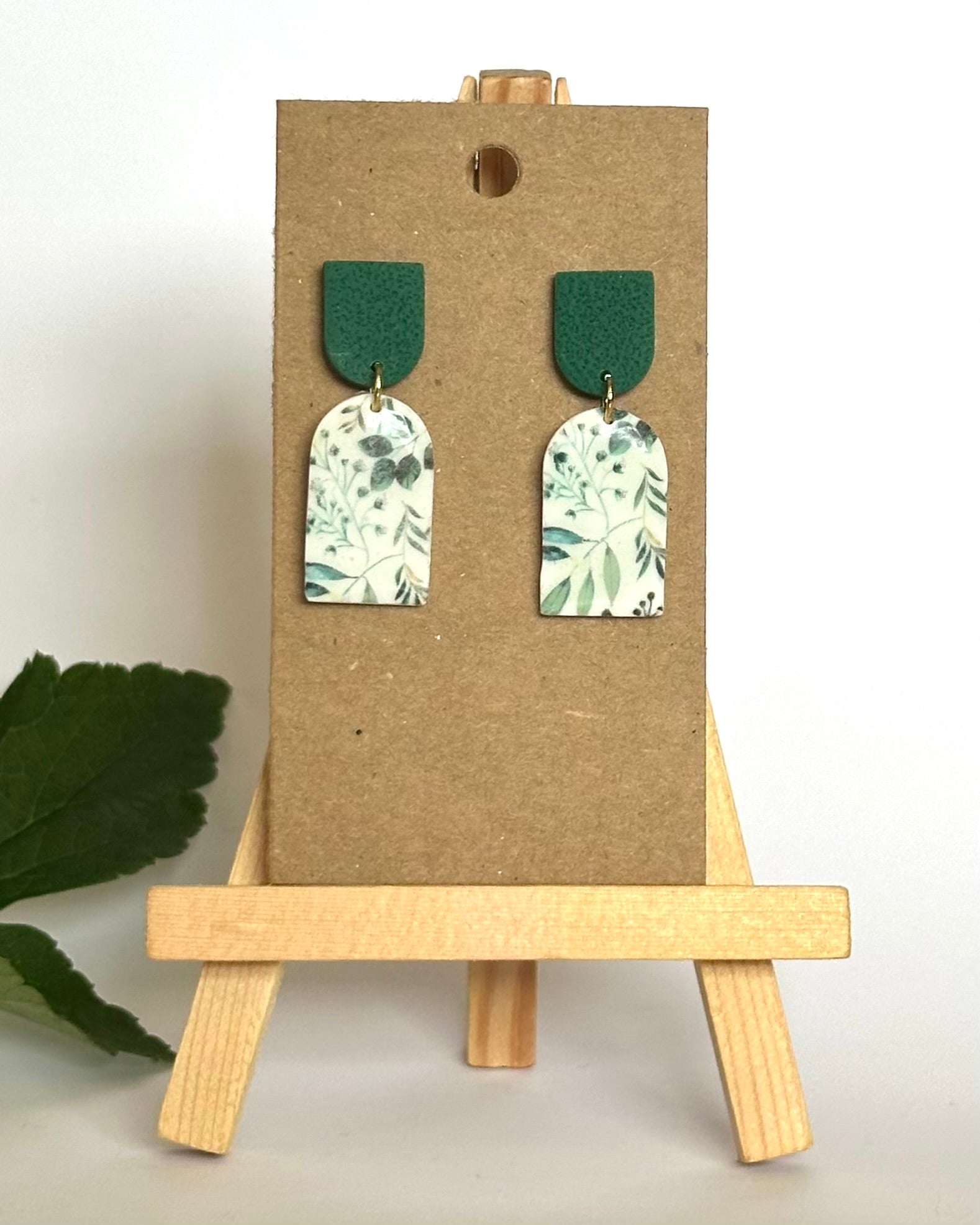 Diese Ohrhänger mit einem Blättermotiv sind ein absoluter Hingucker. Das Motiv wurde mithilfe von Transferpapier aufgetragen und mit einer glänzenden UV-Harz-Schicht versiegelt.