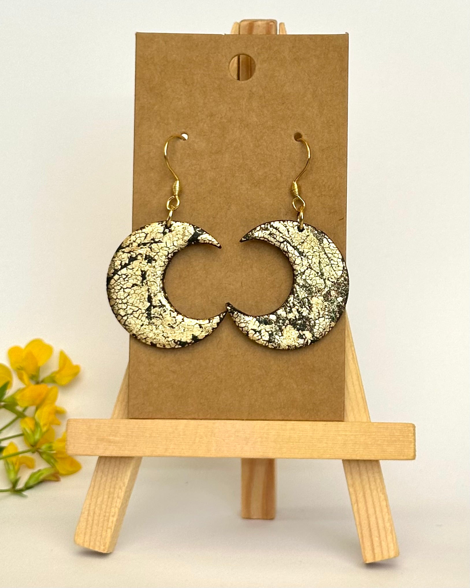 Diese edlen mondförmigen Ohrhänger sind ein Blickfang in deinem Alltag oder auf der nächsten Party. Das Besondere an ihnen sind die goldenen Akzente auf ihrer schwarzen Oberfläche.