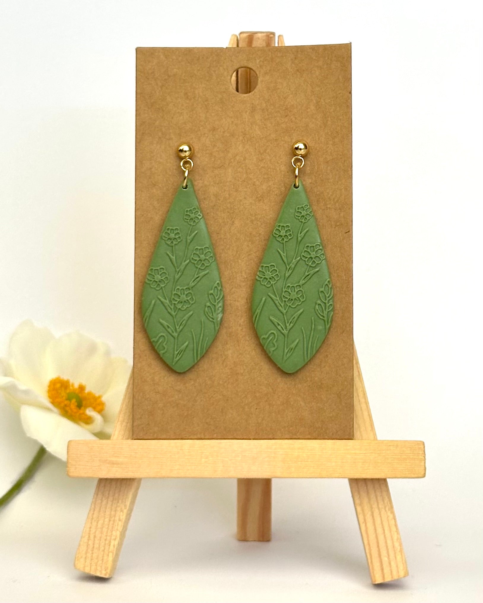 Natur pur! Diese simplen und doch stilvollen Ohrhänger sind mit einem grünen Anhänger gestaltet, der mit einem Blumenmusterrelief verziert ist.