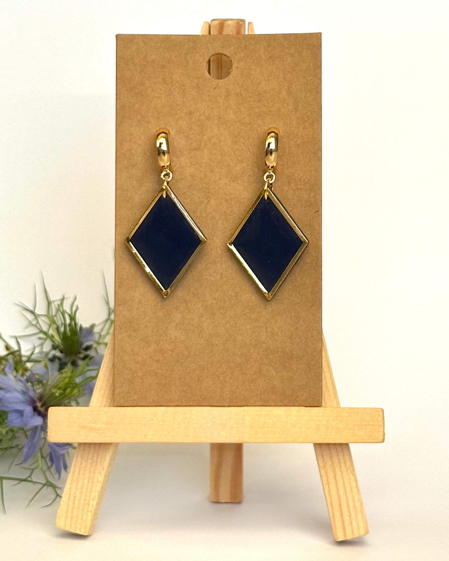 Diese edlen marineblauen Ohrhänger mit einem rautenförmigen goldenen Rahmen ergänzen dein Outfit auf jeder Party. Sie sehen auch sehr stylisch zu dunkelblauen Jeans aus.