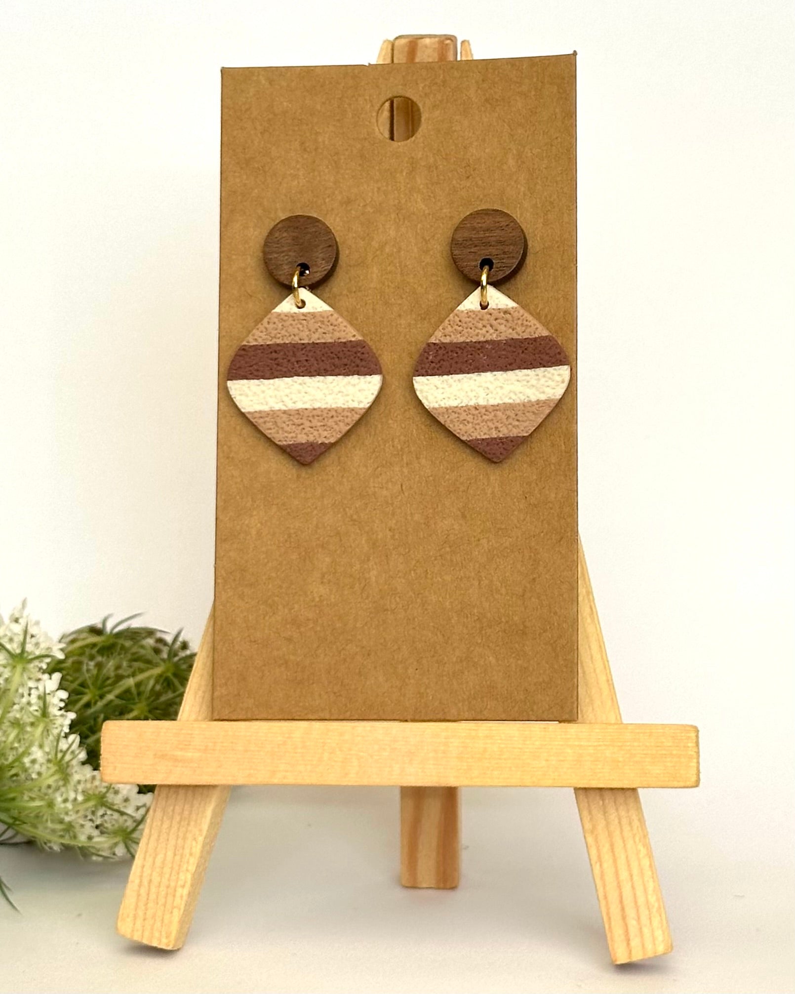 Diese wunderschönen schlichten Ohrhänger bestechen durch ihre Streifen in Erdtönen und ergänzen jedes Outfit perfekt.