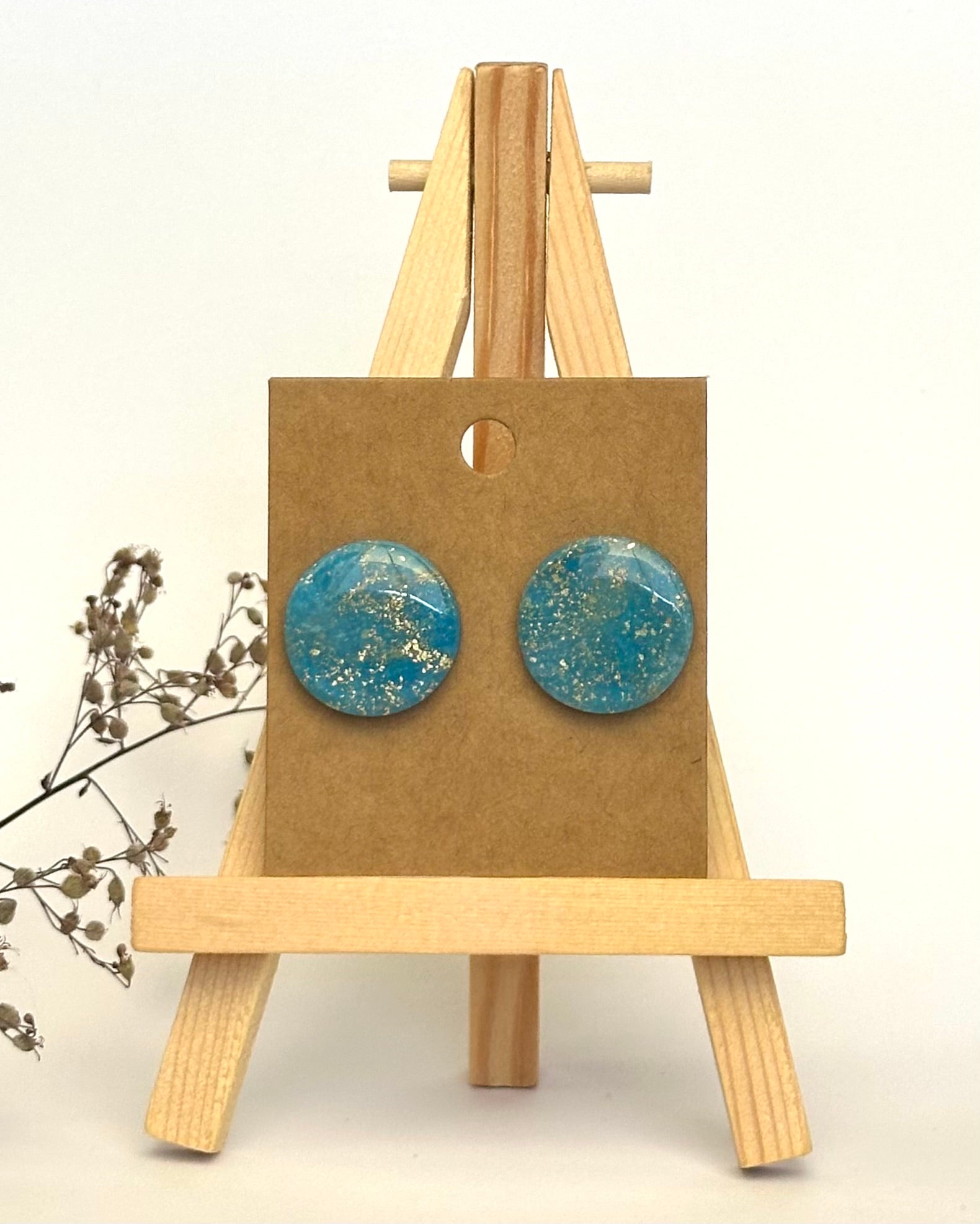 Diese eleganten Ohrstecker überzeugen durch ihre einzigartige Marmor-Optik in verschiedenen Blautönen mit goldenen Akzenten. Jedes Teil ist ein Unikat. Vor allem im Sonnenlicht kommt der leicht durchsichtige Effekt besonders zur Geltung.