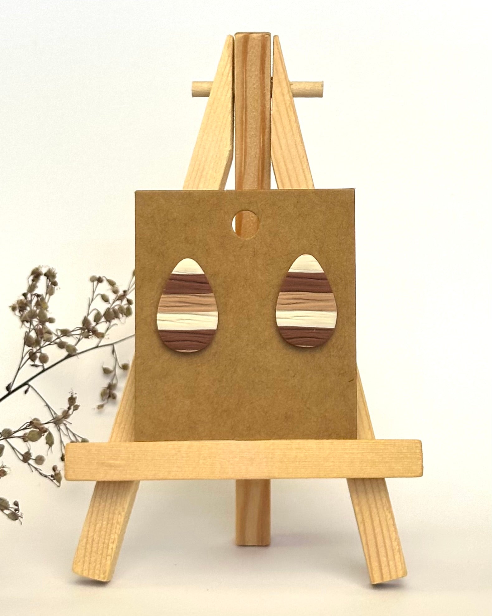 Diese wunderschönen Ohrstecker bestechen durch ihre Streifen in Erdtönen und die Holzmaserung und ergänzen jedes Outfit perfekt.