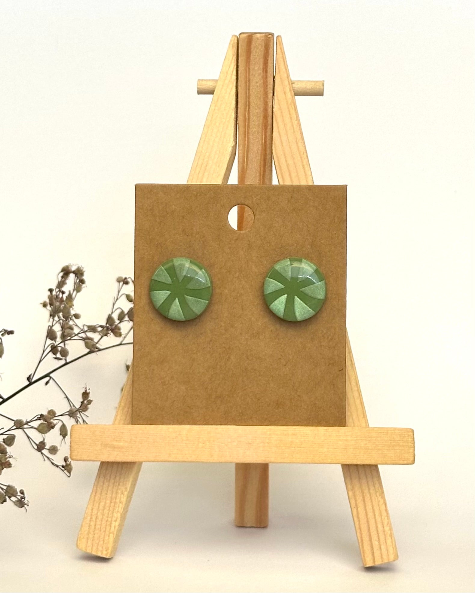 Diese stilvollen Ohrstecker sind mit einem grün schillernden Ornamentmuster verziert - eine Verbindung von Frische und Eleganz.