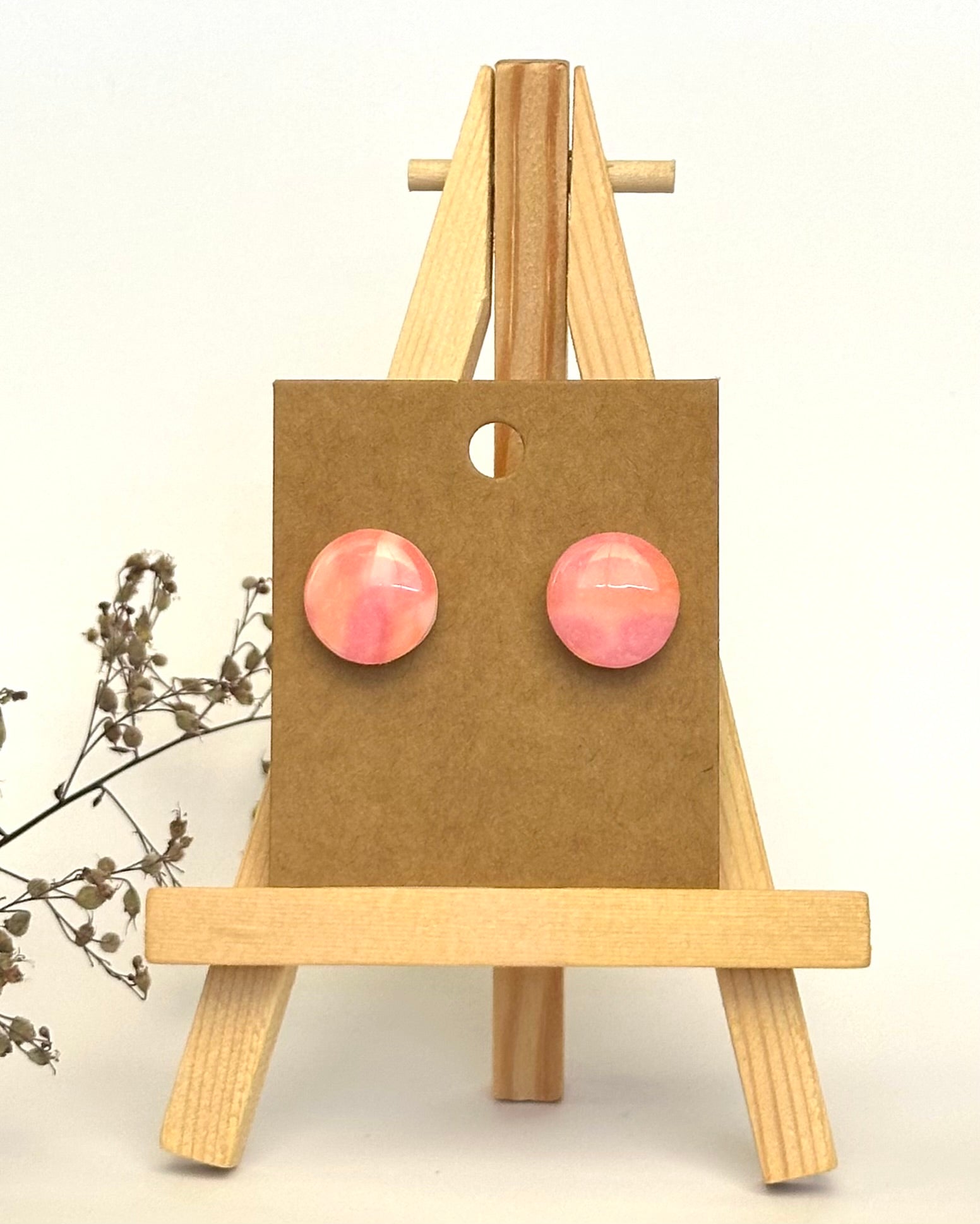 Diese eleganten Ohrstecker überzeugen durch ihre einzigartige Marmor-Optik in Rosa-, Orange- und Weisstönen, die jedes Teil zum Unikat machen. Vor allem im Sonnenlicht kommt der leicht durchsichtige Effekt besonders zur Geltung.