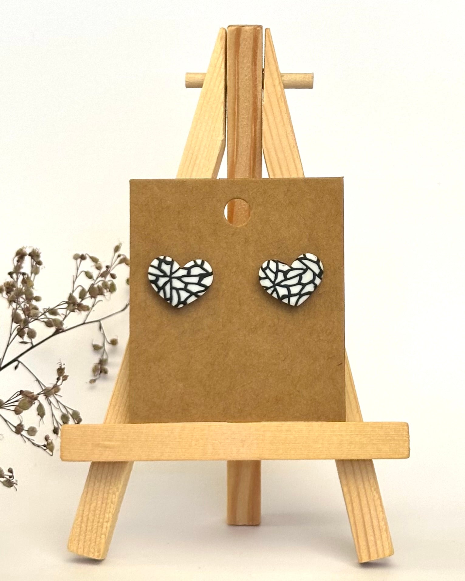 Diese herzigen Ohrstecker bestechen durch ihre Kombination aus schwarz und weiss, mit einem besonders filigranen Muster.