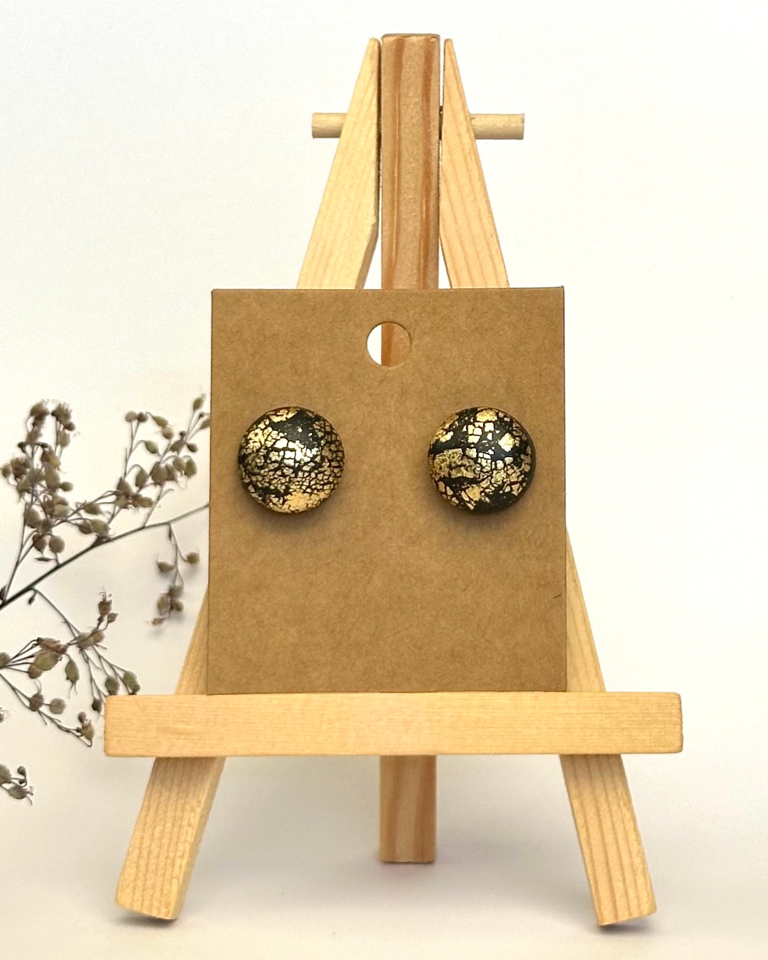 Diese süssen runden Ohrstecker bestechen durch ihre Kombination aus Schwarz und Gold. Zudem sind sie leicht gewölbt, was ihnen einen 3D Effekt verleiht. Sie passen perfekt zu jedem Outfit.