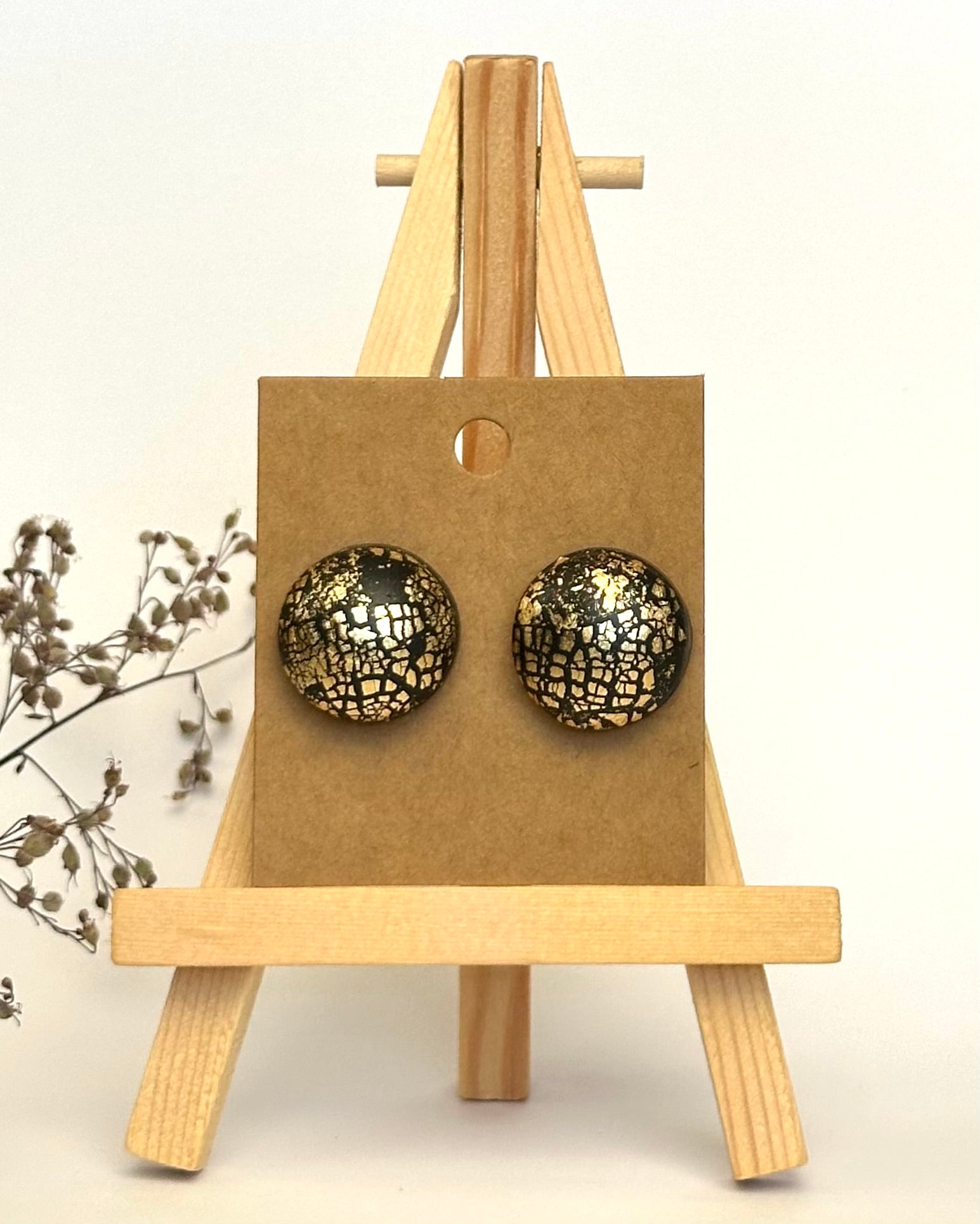 Diese etwas grösseren runden Ohrstecker bestechen durch ihre Kombination aus Schwarz und Gold. Zudem sind sie leicht gewölbt, was ihnen einen 3D Effekt verleiht. Sie passen perfekt zu jedem Outfit.