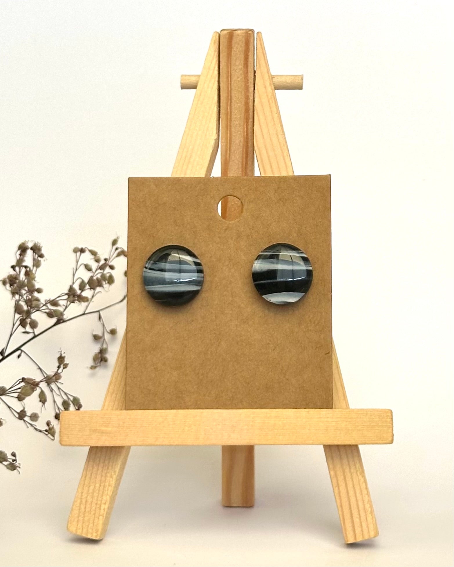 Diese runden Ohrstecker bestechen durch ihre Streifenoptik in Schwarz und Weiss. Sie passen perfekt zu jedem Outfit.