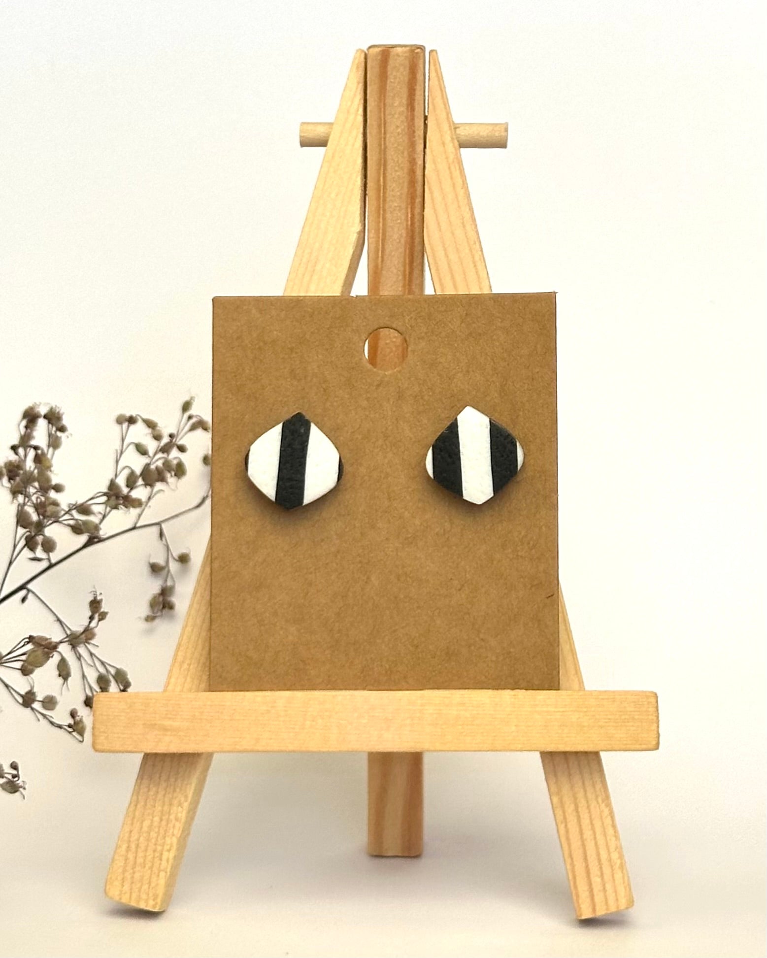 Diese Ohrstecker bestechen durch ihr Streifenmuster in Schwarz und Weiss sowie die gekörnte Textur. Sie passen perfekt zu jedem Outfit.