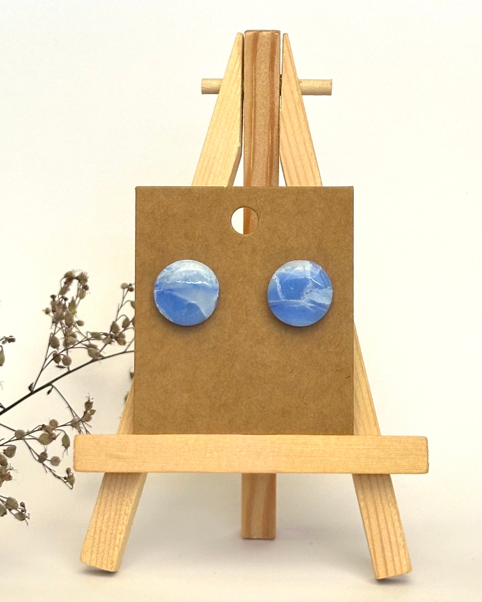 Diese eleganten Ohrstecker überzeugen durch ihre einzigartige Marmor-Optik in verschiedenen Blau- und Weisstönen. Jedes Teil ist ein Unikat. Vor allem im Sonnenlicht kommt der leicht durchsichtige Effekt besonders zur Geltung.