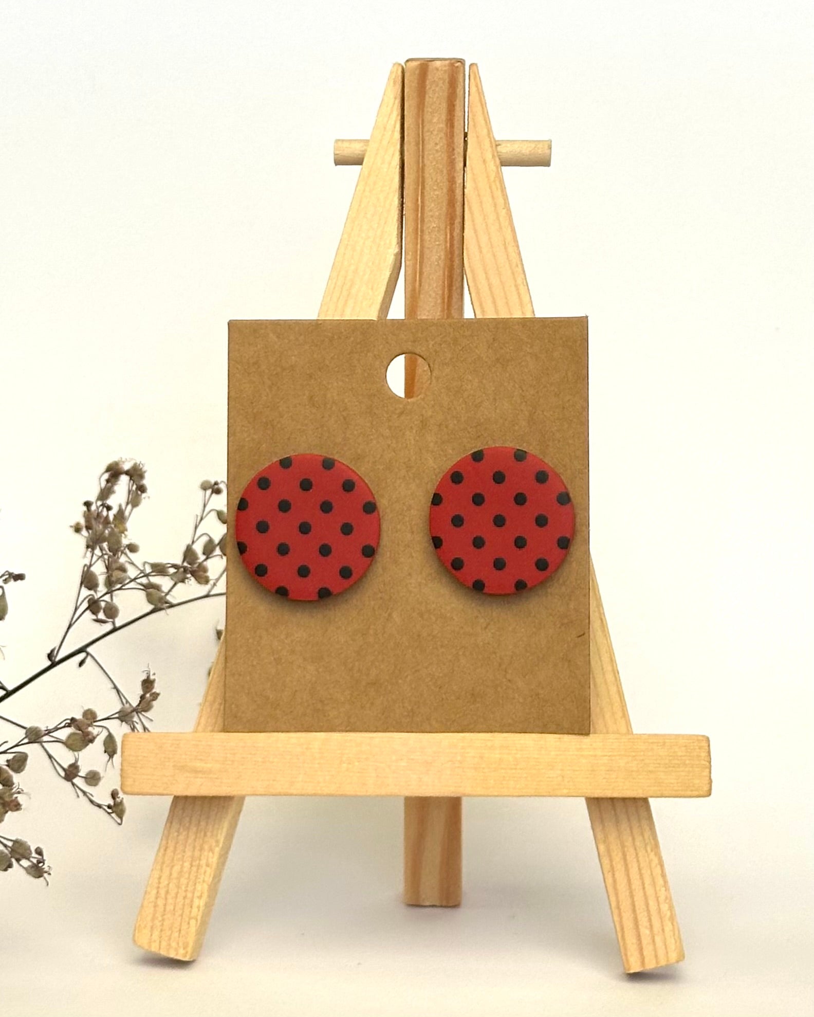 Diese etwas grösseren leuchtend roten Statement Stecker stechen durch das schwarze Polka-Dot Muster hervor und machen sie zu einem Hingucker.
