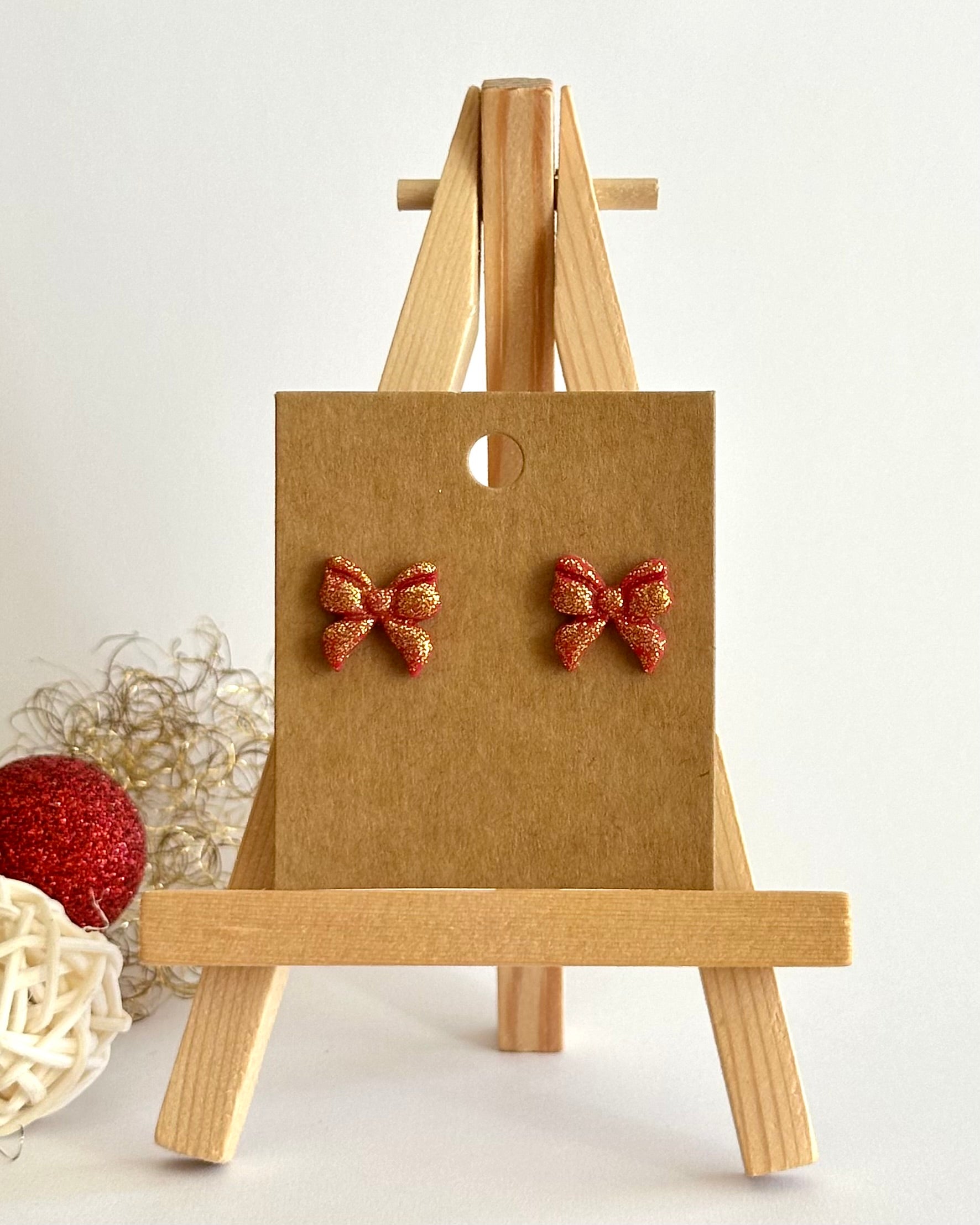 Diese süssen Schleifen-Ohrstecker mit einzigartigem Goldeffekt sind ein absolutes Must-Have an Weihnachten. Es gibt sie in verschiedenen Farben.